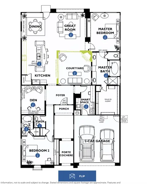 The Positano is a beautiful 1-story floor plan with 2 spacious bedrooms, and 2.5 modern bathrooms spread over 2,121 square feet. This plan also includes a garage with 2 spaces for parking vehicles, extra storage, or hobby essentials.