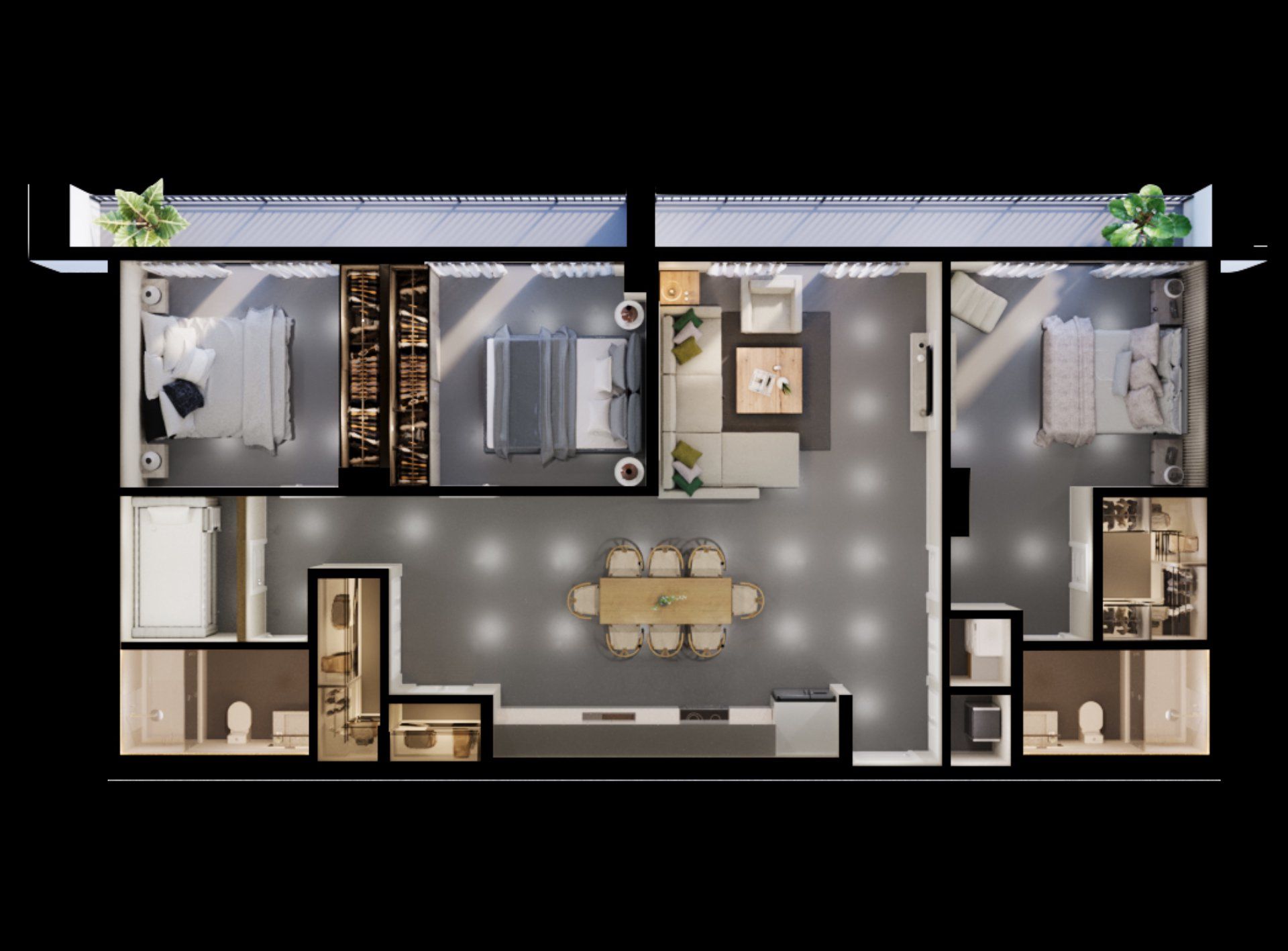 3 Bed + Den plan in 1920 Pierce by ABH Developer Group