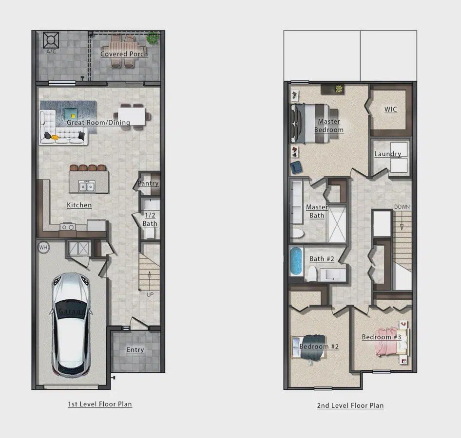 The Inside Units is a beautiful 2-story floor plan with 3 spacious bedrooms, and 2.5 modern bathrooms spread over 1,648 square feet. This plan also includes a garage with 1 space for parking vehicles, extra storage, or hobby essentials.