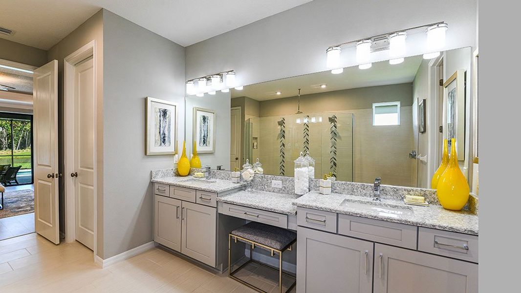 You're welcomed home to an inviting covered porch with space for seating. The foyer makes a great first impression, with sight lines to a formal dining area, staircase, and study. Hosting flawless formal functions is a breeze with a passage from the dining room to the kitchen. Relax and enjoy the company of your guests with those dishes out of sight and out of mind. And, for ultimate convenience, a powder bath is tucked behind the stairs. We know guests always congregate around the kitchen at those informal gatherings. That's why we've designed the spacious kitchen as the heart of the home. Large expanses of counter space provide plenty of space to spread out and bake up a storm. Set out appetizers and hors d'oeuvres on the kitchen island. There is ample eating space with in the sun-drenched casual dining room. The walk-in pantry will keep all your essentials organized and out of sight, plus there's plenty of room for those bulk items. The kitchen overlooks the great room providing a natural flow to mix and mingle. Large sliding glass doors fill the room with natural light. The covered lanai is the perfect spot to host barbecues for true indoor-outdoor living.