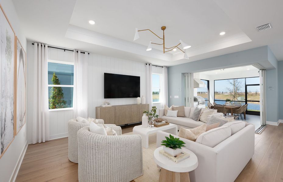 - Extended Family RoomTray CeilingBuilt-in KitchenSliding Glass DoorsAlternate Primary BathCovered LanaiDouble DoorsExtra BedroomShower