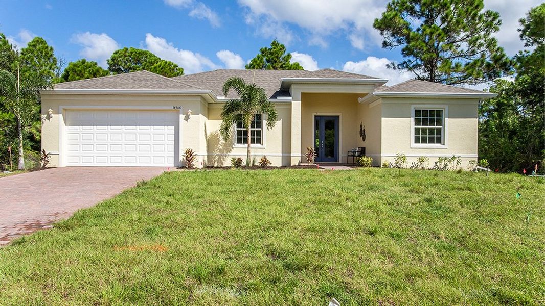 Representative exterior photo of a completed home built from the Jaden by D.R. Horton in South Gulf Cove, Port Charlotte, FL (Image 1).