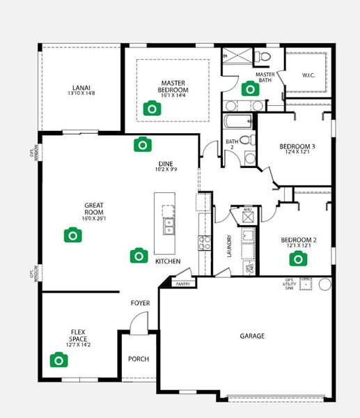 Up front, two generously sized bedrooms share a full bath, with the laundry room conveniently nearby for added functionality. A versatile flex space provides the perfect spot for a home office, playroom, or additional living area, depending on your lifestyle.