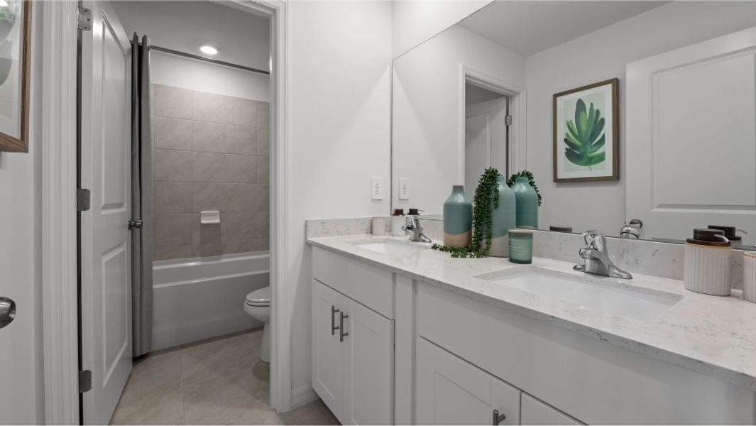 This new two-story home features a spacious open-concept design situated among the Great Room, dining room and kitchen, perfect for seamless everyday living. The second level hosts a versatile loft surrounded by all five bedrooms, including the owner’s suite with a convenient full-sized bathroom. At the front of the home is a two-car garage for ample storage room.
