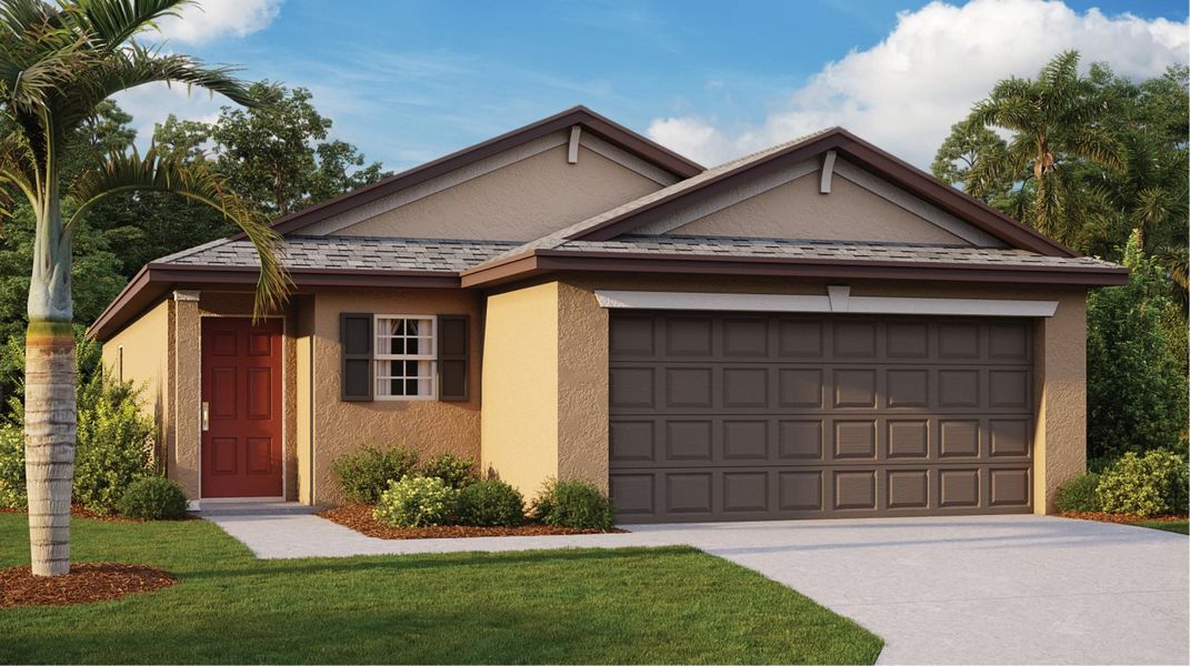 This new single-story home has a smart layout that prioritizes ease of living, while providing modern comfort. Down the foyer is a well-equipped kitchen that shares space with the dining room and Great Room, with an attached patio for outdoor living. On the opposite side of the home is the spacious owner’s suite and two secondary bedrooms arranged near a full-sized bathroom. Plus, a versatile two-car garage.