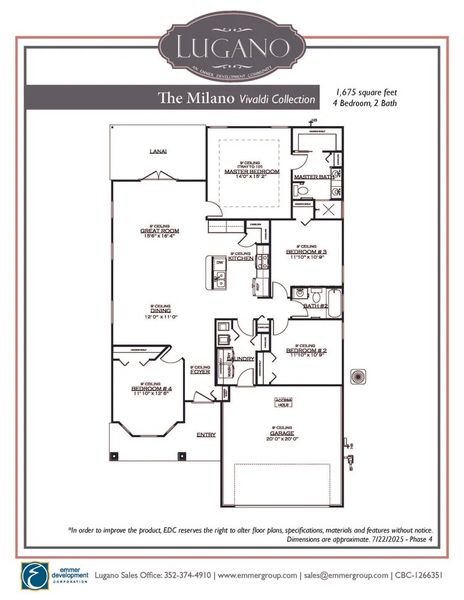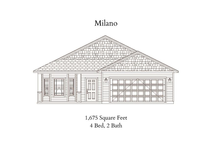 The Milano is a beautiful 1-story floor plan with 4 spacious bedrooms, and 2 modern bathrooms spread over 1,675 square feet. This plan also includes a garage with 2 spaces for parking vehicles, extra storage, or hobby essentials.