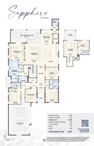 The Sapphire 2 Story floor plan is part of Wild Blue at Waterside, a new home community by Lee Wetherington Homes, located in Lakewood Ranch, FL. Visit the Wild Blue at Waterside community page for full neighborhood insights, including nearby schools, shopping, walk & bike-scores, commuting, air quality & natural hazards.