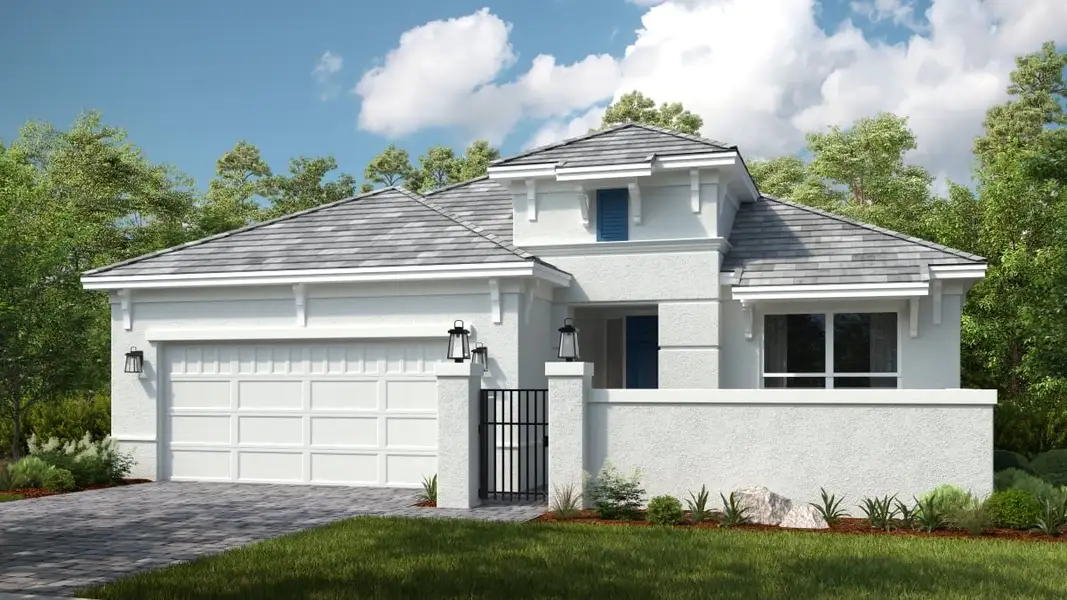 Designed for those who crave comfort and sophistication, the Lazio floor plan is the best of resort living. This 1-story home features 3 bedrooms, 3 bathrooms, a 2-car garage and 2,275 square feet of beautiful, open-concept living space. Through the courtyard, you’ll find a porch where you will enter into the foyer that sweeps into a dining area, spacious great room, kitchen and lanai. Enjoy morning sunrises and evening sunsets in this breathtaking spot! Nestled away for added privacy is a luxurious primary suite with a walk-in closet and spa-inspired primary bathroom, a haven you’ll love coming home to. Towards the front of the home, discover two-bedroom suites with their own bathrooms and a flex room to customize, plus a convenient powder room and laundry room. And, you have options! Personalize your home with these available upgrades: