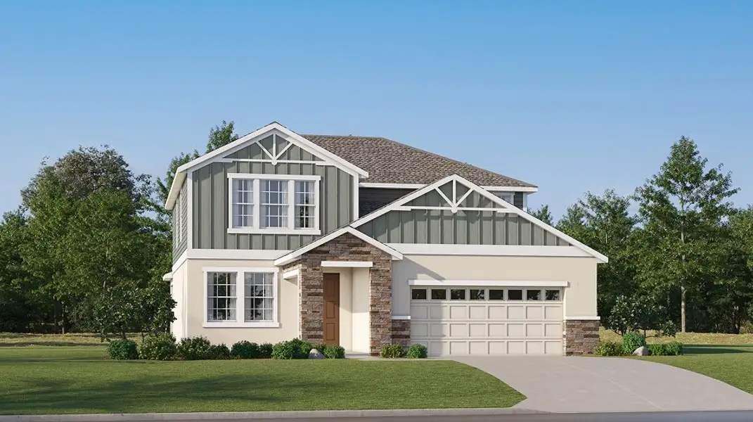This new two-story home delivers flexibility with a first-floor bedroom and full bathroom—perfect for guests, multigenerational living or anyone valuing main-level convenience. A spacious Great Room shares an open plan with a modern kitchen and charming breakfast nook, with an elegant formal dining room located off the foyer. Step out onto a generous lanai that extends the living space outdoors for year-round enjoyment. Upstairs, discover a comfortable owner's suite with spa-inspired bathroom and generous walk-in closet, plus two additional bedrooms. A versatile bonus room completes the second floor, ready to serve as a media center, playroom or workstation.