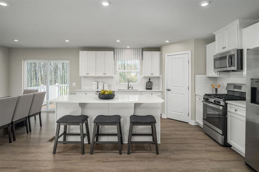 The open floor plan features a spacious great room that flows seamlessly into the gourmet kitchen with a walk-in pantry. Gather around the large island or dining table for memorable meals with family and friends.