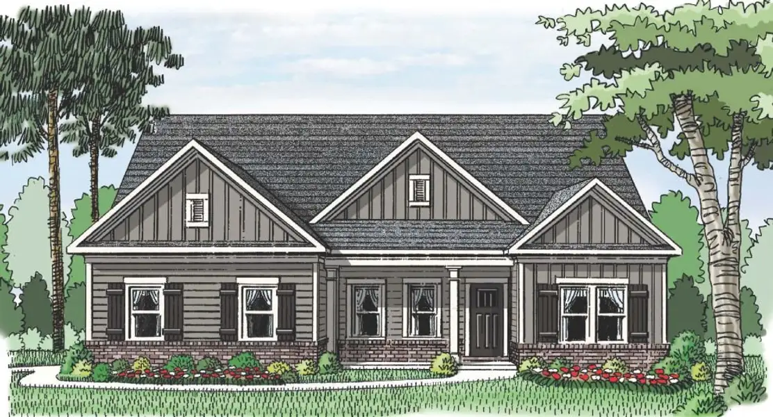 Perfect ranch home with 4 bedrooms and 3 full baths. No need for stairs with this split bedroom design featuring an Owner’s suite with tray ceiling, double vanity, separate tub and shower and walk-in closet. Private Guest room with full bath plus 2 additional large bedrooms are also on the main. The bright family room is the center of this home and has an option for a fireplace. The kitchen and breakfast have a view to the family room and feature a large pantry, serving bar and lots of counter space.