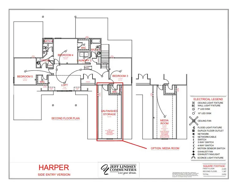 Harper B (3832 sq. ft.) is a home with 5 bedrooms, 4 bathrooms and -car garage.