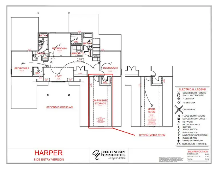 Harper B (3832 sq. ft.) is a home with 5 bedrooms, 4 bathrooms and -car garage.