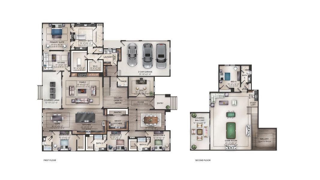 - KitchenPowder RoomGame RoomOffice/StudyDining RoomFamily RoomBreakfast AreaOpen Concept FloorplanPrimary Bedroom Downstairs