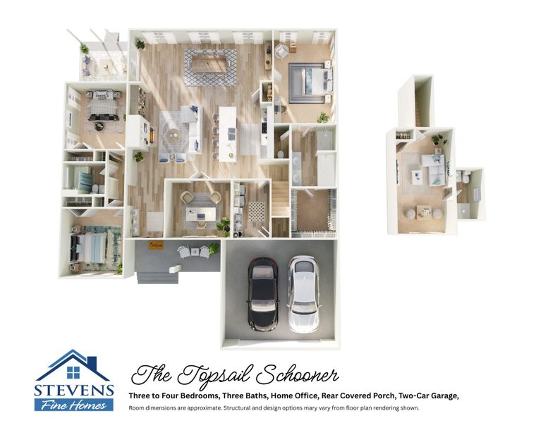 The Topsail Schooner floor plan is part of The Bluffs at Lake Waccamaw, a new home community by Stevens Fine Homes, located in Lake Waccamaw, NC. Visit the The Bluffs at Lake Waccamaw community page for full neighborhood insights, including nearby schools, shopping, walk & bike-scores, commuting, air quality & natural hazards.