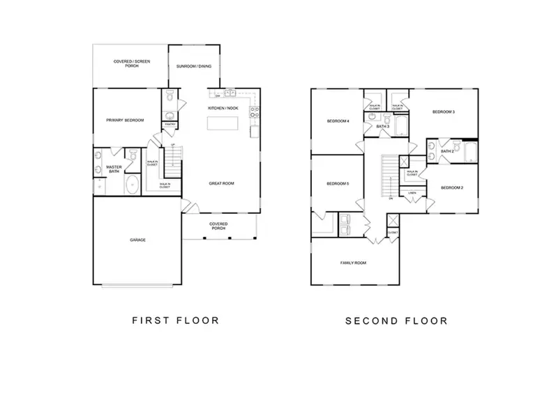 This 5 bedroom, 3.5 bathroom plan is jam packed with more than 2,600 square feet of living spaces you’re going to love! The first floor features a two car garage, spacious island kitchen, a half bath, great room and downstairs primary suite with attached spa bath and oversized walk-in closet. Upstairs you’ll find four additional bedrooms, each with a generous walk-in closet and two additional bathrooms. The laundry room, linen closet and a bright, spacious family room complete the second floor.
