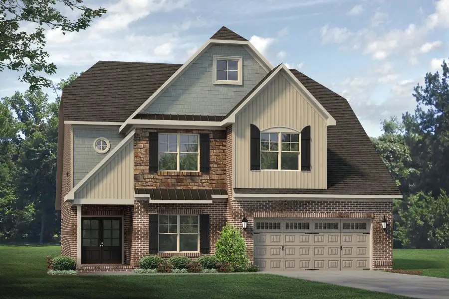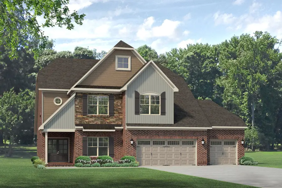 The 2-story foyer is adorned with wainscoting, a chandelier, and a staircase, which create a dramatic effect upon entering the home. The den/office and powder room are easily accessed from the foyer. The kitchen is open to the great room and dining area. In the kitchen, you will find a large pantry, tons of storage and cabinetry, and a very large island which adds to the workspace and makes the workflow very efficient. The primary suite is adorned by a tray ceiling and comes with lots of conveniences, including a large walk-in closet and primary bathroom. The primary bath has double sink vanity, garden tub, and separate ceramic tile shower. Upstairs are bedrooms 2 & 3, two full Baths, and an extra large walk-in attic space, which can be upgraded to a bonus room or 4th bedroom. (Optional: Sunroom, Covered patio, or Covered porch) *Photos are Representative*