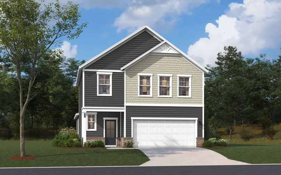 Welcome to the Sadler Plan, a stunning two-story single-family home designed to meet the needs of modern buyers seeking both style and functionality. As you step through the inviting front porch, you are greeted by a warm foyer that leads seamlessly into the heart of the home. The open layout is a standout feature, harmoniously connecting the living, dining, and kitchen areas. This design not only enhances daily comfort but also creates an ideal environment for entertaining friends and family. The kitchen, a true centerpiece, boasts a generous island and a spacious pantry, making it perfect for culinary adventures and gatherings.