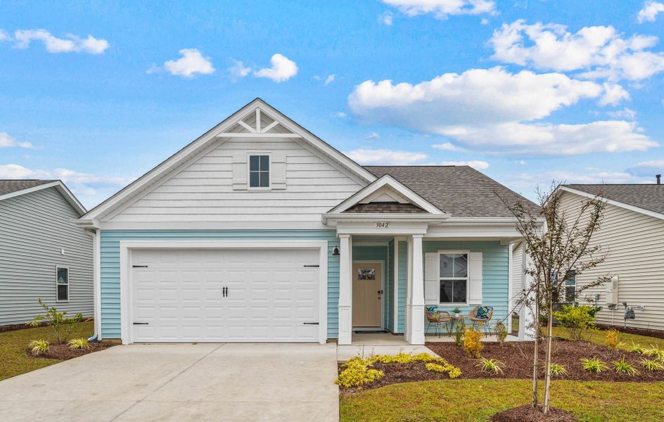 Upon entering from the covered porch, you'll be greeted by two bedrooms and a full bath on your left, perfect for hosting guests in their own serene retreat. Continuing on, you'll discover a harmonious flow between the kitchen, dining room, and great room. A stunning kitchen island offers additional seating and counter space for all your culinary needs and entertaining endeavors. Add a third car garage for extra storage space!