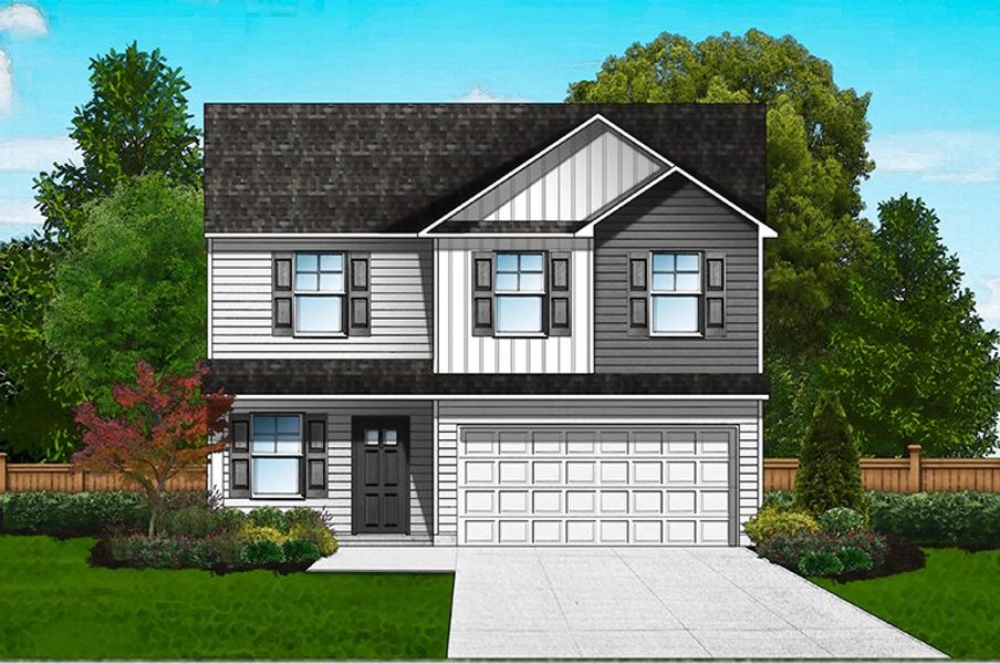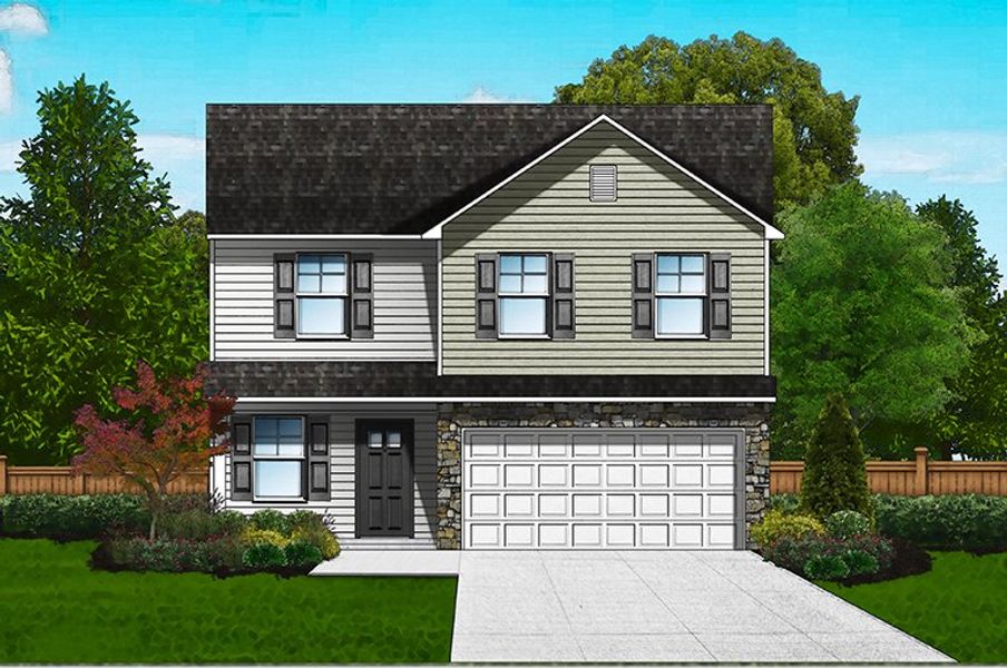 Open plan downstairs with optional island in kitchen. Upstairs features a large primary suite with walk in closet, double vanities, and large walk-in shower. Second floor features 3 additional bedrooms and a shared bath. 2 car garge