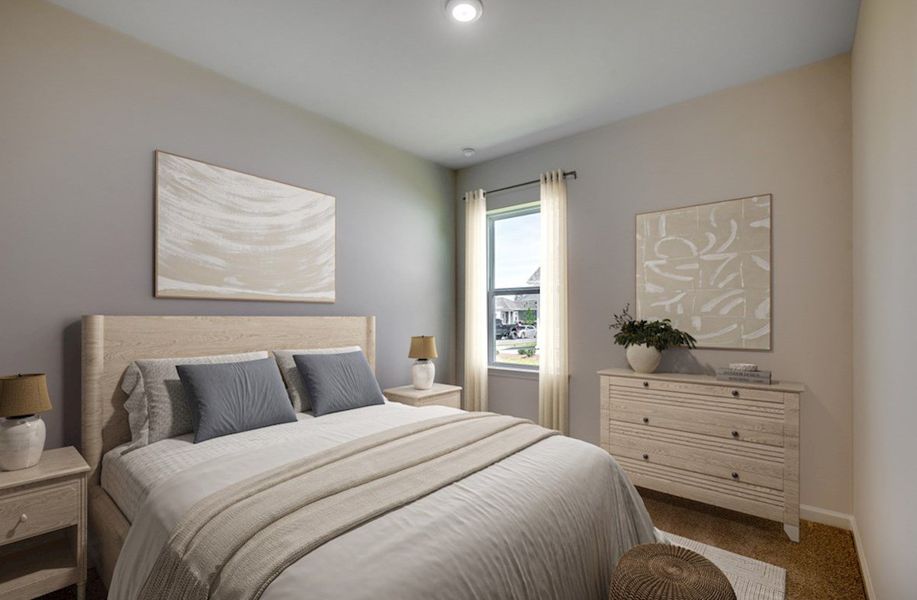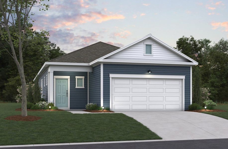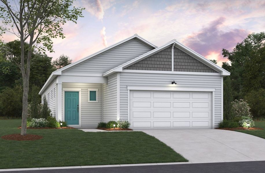 The single-story Daisy features a well-thought-out floorplan. This single-family home boasts an open-concept living area offering ample countertop space, perfect for cooking and entertaining. With a spacious kitchen, dining, and great room, this home combines functionality and comfort seamlessly.