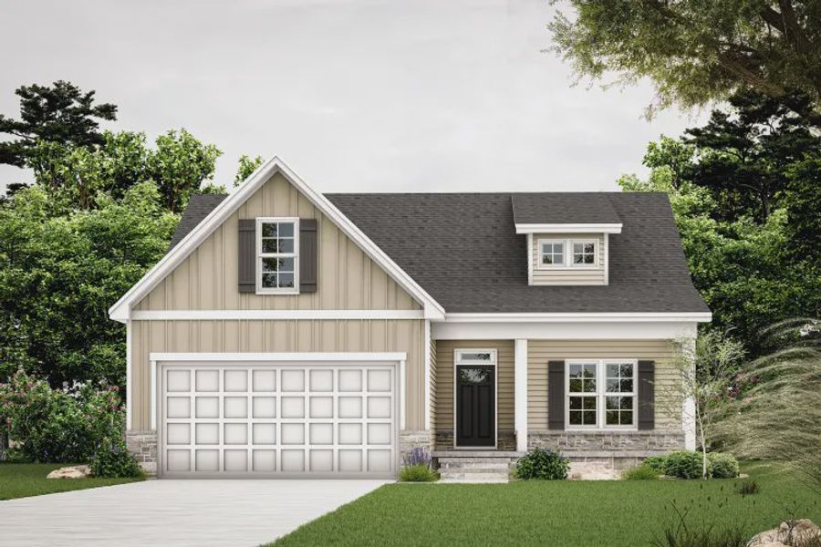 The Blossom, an 1,820 sq ft home, offers comfortable modern family living. Its efficient layout maximizes space, creating a welcoming atmosphere perfect for daily life and entertaining. Three exterior elevations (A, B, & C) provide architectural variety and brick choices for personalized style. The open-concept main floor seamlessly connects the kitchen, dining nook, and spacious family room, fostering a bright and airy feel. The kitchen boasts ample counter space and cabinetry, while the dining nook offers an intimate setting. The expansive family room is ideal for relaxation and gatherings. A covered porch extends living space outdoors. The master suite is a private retreat with a spacious bedroom, well-appointed bath, and large walk-in closet. Two additional bedrooms share a hall bath. A versatile second-floor bonus room adapts to home office, playroom, or guest suite needs. A double garage provides parking and storage. The Blossom blends practicality and charm, offering a customizable design to perfectly reflect your lifestyle."