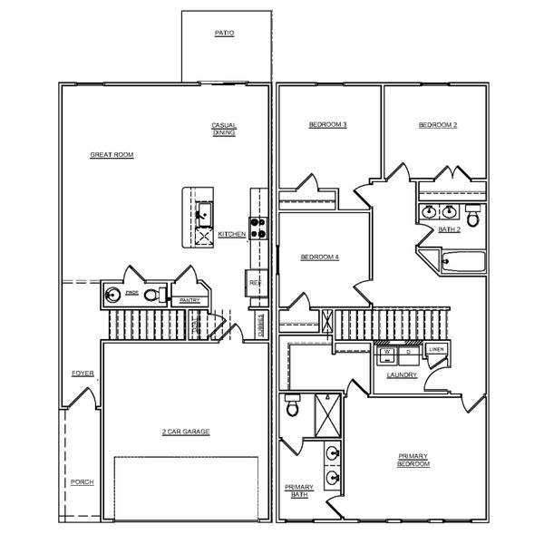 From the moment you step inside, the open-concept kitchen, dining area, and great room create a welcoming space for everyday life. Picture mornings at the kitchen island, meals in the dining area, and evenings spent gathered in the great room — all connected and easy to move through. The kitchen features a corner pantry and clear sightlines into the living area, while the rear patio extends your living space outdoors for grilling, relaxing, or hosting friends.