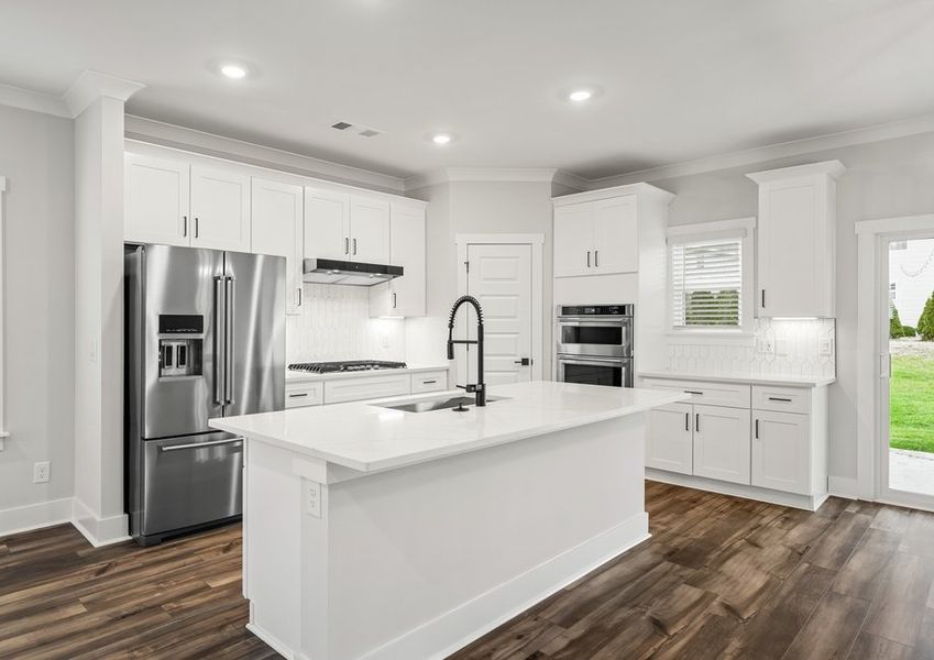 - Stainless Steel AppliancesQuartz countertopKitchen Island