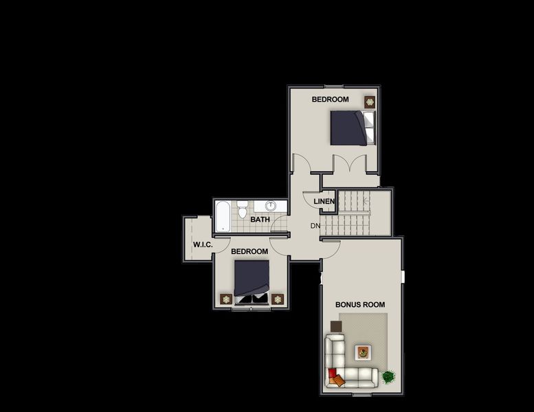 The second floor includes two additional bedrooms, a full bathroom, and a versatile bonus room. Whether you need a playroom, media room, or a space for hobbies, this area adapts to your lifestyle with ease.