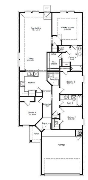 The San Marcos floorplan is a spacious four-bedroom, two-bathroom home designed for comfortable living. The living and dining area provides ample space for hosting gatherings, allowing you to entertain family and friends with ease. The well-equipped kitchen offers plenty of counter space for meal prep and cooking. The San Marcos floorplan strikes a balance between practicality and comfort, making it an inviting home for individuals and families alike.