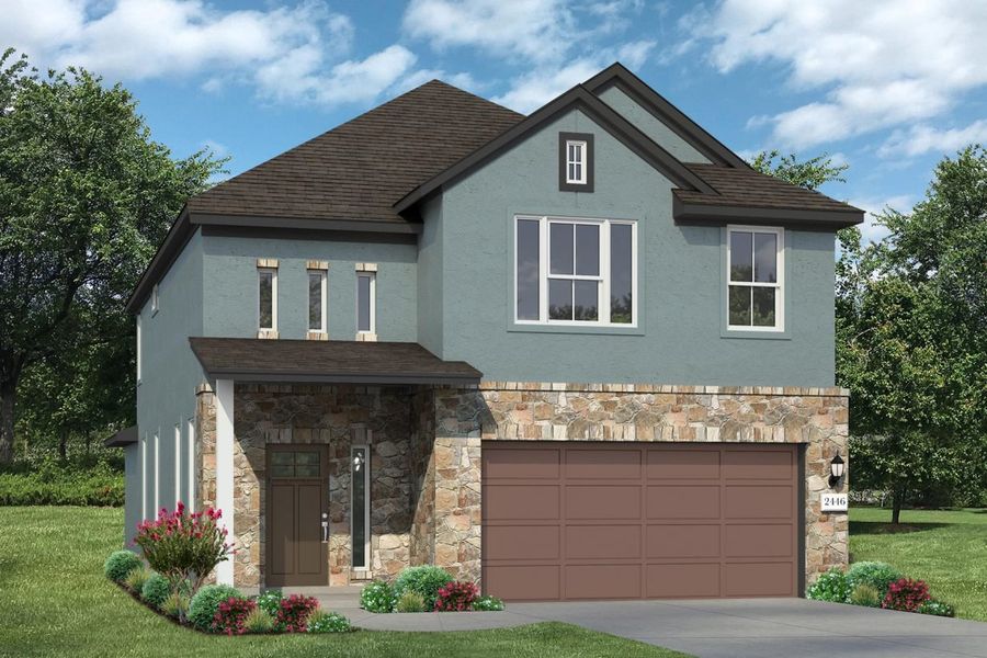 The Clear Creek 2446 floor plan is part of Clear Creek, a new home community by Brohn Homes, located in Round Rock, TX. Visit the Clear Creek community page for full neighborhood insights, including nearby schools, shopping, walk & bike-scores, commuting, air quality & natural hazards.
