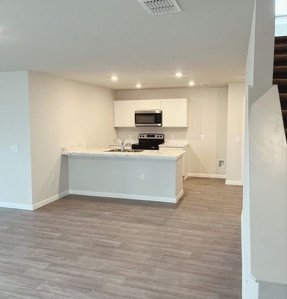 As you step into the welcoming entryway, you will find a convenient half bathroom and the staircase leading to the upper level. Continue down the hall past the stairway and you will find an open concept living and dining area on the main floor. The kitchen, complete with a central island, overlooks the dining and living room, creating a perfect space for meals and family time. Off the living room, you will also have a downstairs bedroom perfect for guests or a study. Upstairs, the primary suite offers a private retreat with its own bathroom. Four additional bedrooms, a laundry room and a full bathroom complete the upper level, providing ample space for family or guests.