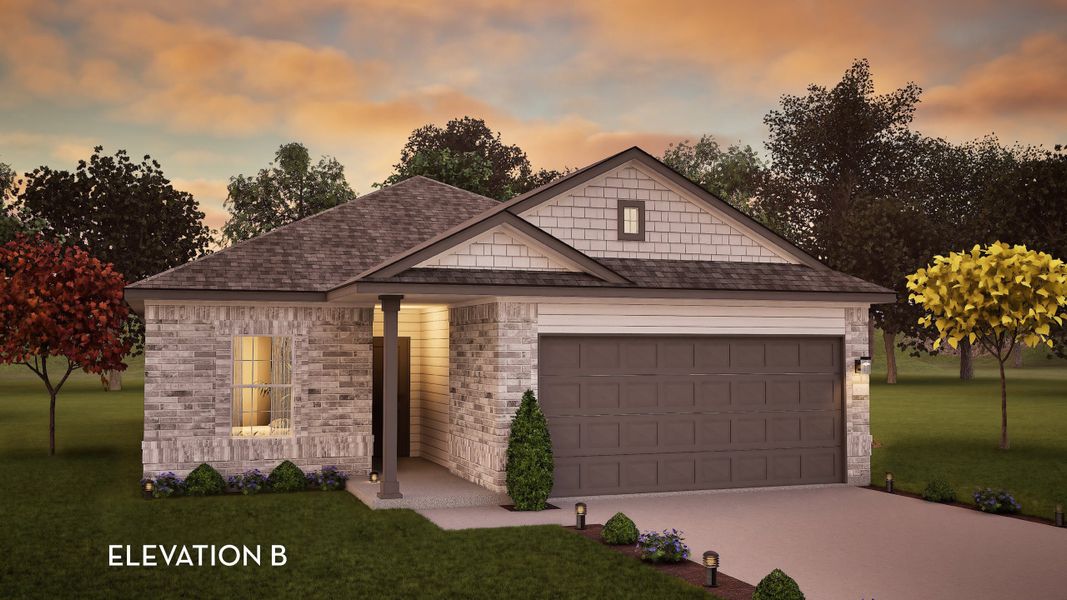 The Frio floor plan is as exciting for its features as it is for the tremendous value. A package of dynamite, this home boasts three bedrooms, two walk-in closets and two baths joined with a huge family room and a large kitchen/dining area. Upon entry of the home, you are met with access to your two-car garage. If you are needing the extra storage space, you are able to opt for an extra 1/2-car garage! You are then guided to the heart of the home - the sizable family room that faces the kitchen. This layout is ideal for hosting gatherings for all your friends and family. Opening up to the family room is your conveniently-designed kitchen and breakfast/dining room combination with entry to your walk-in utility room. The kitchen area is equipped with exclusive features like granite countertops, designer light fixtures, and flat-panel birch cabinets - these features alone are sure to please any crowd! Leading to your backyard from the breakfast/dining area, you can decide to include a covered patio if you like to get a breath of fresh air while being protected from the weather. The three large bedrooms are the perfect size for your family or guests when they come to visit. The second and third bedrooms are placed at the front of the home, with the third bedroom boasting a walk-in closet. The secondary bathroom lies conveniently between the two bedrooms. If you are looking to find the balance between work and play with a designated area to get things done, opt to transform the secondary bedroom into a study room! The option is yours. Lastly, the private master suite is secluded on the other end of the home and boasts a generously-sized master bathroom. The master bathroom is complete with cultured marble countertops with the option for dual vanities, a shower/bathtub enclosure, and a massive walk-in closet for you to enjoy! Upgrade your master bath to a master luxury bathtub with shower or an oversized super shower instead. You will cherish living in your Frio home!