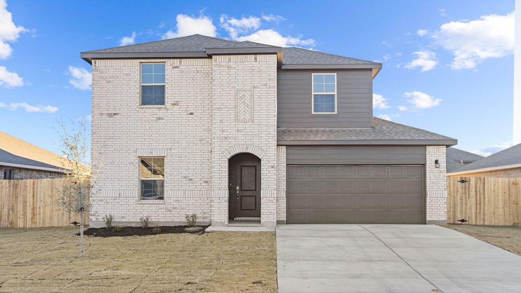 The Rosemont is one of our two-story floor plans newly featured in the Homestead at Parks Bell Ranch community in Odessa, TX. Featuring a modern brick exterior and elevated interior concepts at an affordable price, the Rosemont is sure to impress. Take a look inside this 5 bedroom, 3 bathroom home and discover 2,772 square feet of comfortable modern living. The downstairs features a great open layout, creating a comfortable and spacious heart of the home. The kitchen features stylish backsplash, shaker-style cabinets, granite countertops, and sleek stainless steel appliances, adding an extra level of charm to your space. The corresponding dining and living areas complete the perfect spot for everyday living and entertaining. The primary bedroom and the guest suite are also both thoughtfully placed downstairs, creating ideal spots for additional privacy and serenity. The primary bedroom even features its own attached bathroom, allowing for seamless morning routines and plenty of space to get ready for the day. The upstairs of the Rosemont features 3 additional bedrooms as well as an exciting walled-in game room space, sure to impress the younger members of your home. No matter how you fill your home, the Rosemont provides perfect opportunities to do so.