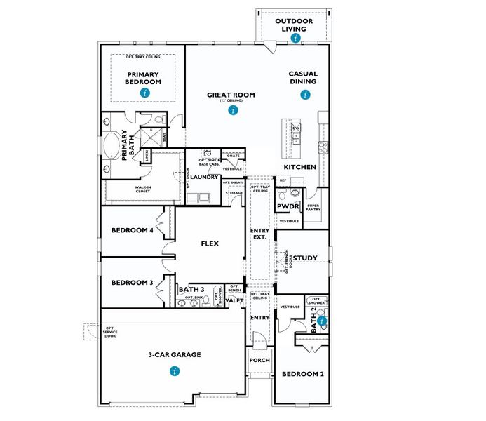 - Flex RoomGreat RoomPrimary Bedroom On MainKitchenPowder RoomOffice/StudyDining RoomFamily RoomOpen Concept FloorplanPrimary Bedroom Downstairs
