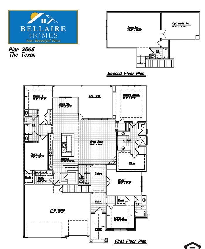 The The Texan is a beautiful 2-story floor plan with 4 spacious bedrooms, and 4.5 modern bathrooms spread over 3,565 square feet. This plan also includes a garage with 3 spaces for parking vehicles, extra storage, or hobby essentials.