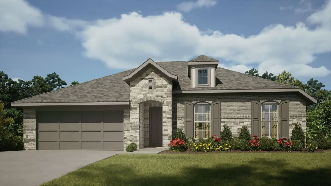 The one-story Odessa plan checks all the boxes. The Odessa plan features an abundance of space with its 3 bedrooms and 2.5 bathrooms plus additional Flex room that offers the option to be bedroom 4 as well as the oversized 2 car garage with storage. The extra-large secondary bedrooms are split from the truly grand Owner’s suite with large spa-like walk-in shower and generous walk-in closet. The spacious Gourmet kitchen overlooks the dining area and spacious great room and includes a 5’x5’ walk-in pantry. The near 200+ square feet of space in the owner’s suite offers a spa-like ensuite bath with dual vanity sinks, walk-in shower and 15’x7’ walk-in closet. Some of the flexible options for this home include: 12’ Ceiling at Great Room, large multi-slide door at great room, Extended Rear Patio, Gourmet Kitchen, Fireplace, Super Shower and Free-Standing Tub at Owner’s Bath, to name a few.