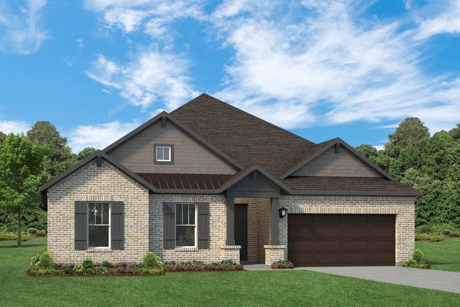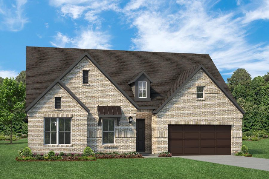 The Diana new home plan by RockWell Homes is located on 70-foot-wide over-sized home site offers a sophisticated single-story design with an open-concept layout, featuring 4 to 5 bedrooms, 2.5 to 3.5 bathrooms, and options for a 2 to 3 car garage with wood garage doors. The exterior combines a covered front porch and covered back yard patio with a stylish full brick exterior and an elegant 8-foot front door. Inside, a private foyer leads to the formal dining area, living room, and open kitchen, designed for both comfort and functionality. The kitchen is a highlight of the home, featuring a center island with bar-top seating, luxury solid surface countertops, stainless steel appliances including a gas cooktop, built-in stainless-steel oven, and microwave, as well as a dishwasher. Additional kitchen features include an undermount sink, Delta faucet, an over-sized walk-in pantry, ceramic tile backsplash, custom wood vent hood and cabinet options, 42-inch upper cabinetry, expansive countertop space, recessed can lighting and upgraded flooring. Family room is over-sized with an optional gas fireplace enjoys views of the covered patio and private back yard. The primary suite, located at the back of the home for added privacy, boasts vaulted ceilings, ceiling fan and a luxurious bathroom with dual sink vanities with solid surface countertops and undermount sinks, ceramic tile flooring, a free-standing soaking tub, private water closet and a ceramic tile shower with a semi-frameless glass enclosure. The suite also includes a linen closet, Delta faucets, a lighting package, towel bars and an oversized walk-in closet. Secondary bedrooms are well-appointed with walk-in closets and additional linen space. The secondary bathroom features ceramic tile flooring, ceramic tile tub/shower surround, luxury solid surface countertops, dual sinks, Delta faucets, a lighting package, and towel bars. Additional features of the Diana plan include a fully automated sprinkler system, a fully fenced private backyard with gate and metal posts, full gutters, full landscaping package, smart home, 8-foot front door, over-sized utility area with ceramic tile flooring and cabinets, garage door opener, coach lighting, energy-efficient HVAC, a digital thermostat, walk-in closets, ceiling fans, tankless hot water heater, covered patio, energy efficient construction, new home warranty, ensuring both style and functionality throughout the home.