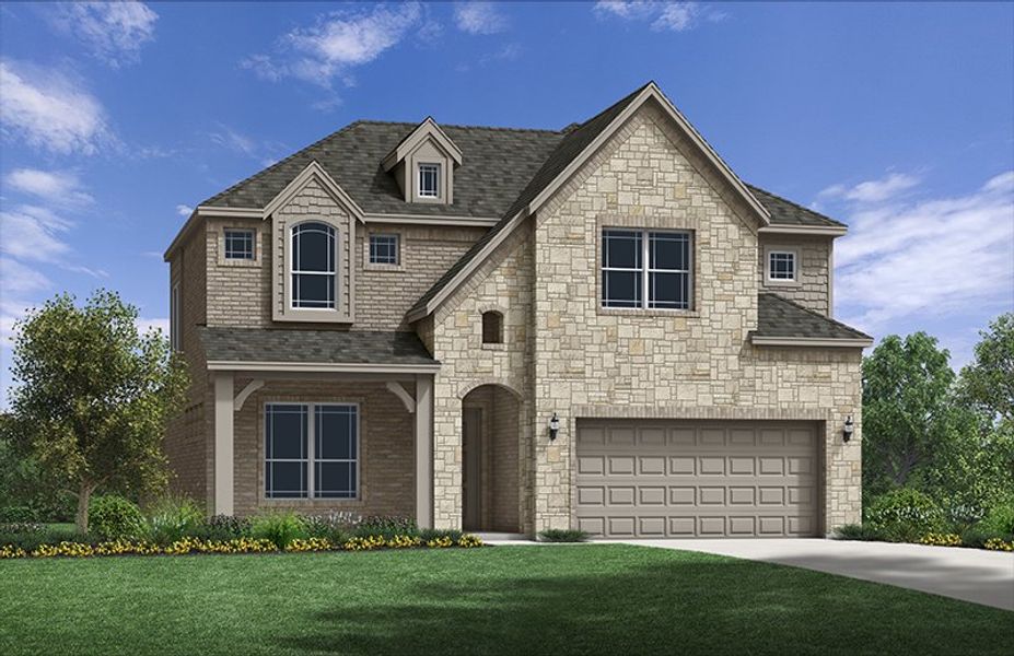 The Kerrville is a spacious two-story home offering 2,857 square feet of thoughtfully designed living space with 4 bedrooms, 2.5 baths, and a 2-car garage. A classic brick and natural stone exterior welcomes you home, while a dramatic two-story foyer creates an impressive entry.