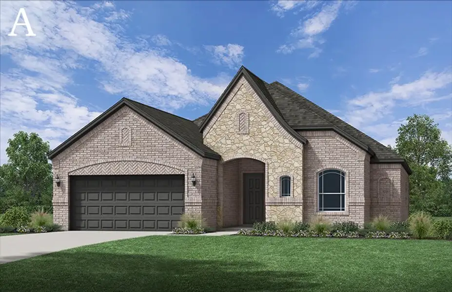 The Del Rio is a thoughtfully designed one-story plan offering comfortable living with 3 bedrooms, 2 baths, and a 2-car garage. A classic brick and natural stone exterior welcomes you home, while an open foyer creates a bright and inviting entry.
