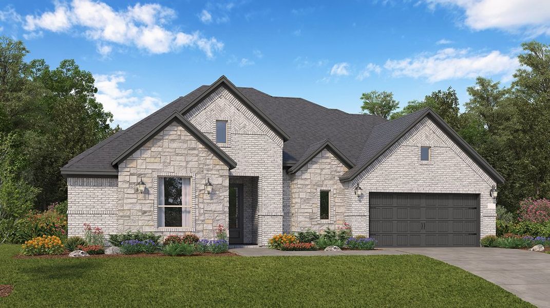 Upon entry, this new two-story home features two bedrooms sharing a full bathroom, steps from a convenient and flexible study. An open plan at the back of the home encourages simple everyday transitions with easy access to a patio, while a dining room offers the ideal setting for hosting meals and celebrations. A generous first-floor owner’s suite provides a serene retreat with an en-suite bathroom and walk-in closet, with an additional bedroom on the second floor.