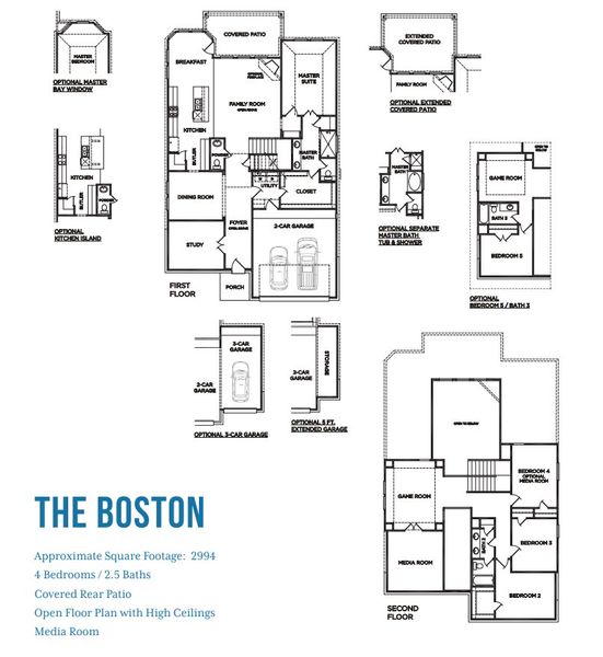 The The Boston is a beautiful 2-story floor plan with 4 spacious bedrooms, and 2.5 modern bathrooms spread over 2,994 square feet. This plan also includes a garage with 2 spaces for parking vehicles, extra storage, or hobby essentials.