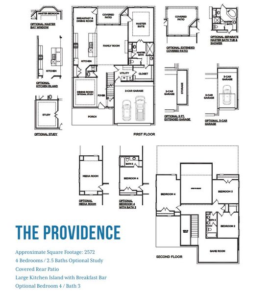 The The Providence is a beautiful 2-story floor plan with 4 spacious bedrooms, and 2.5 modern bathrooms spread over 2,572 square feet. This plan also includes a garage with 2 spaces for parking vehicles, extra storage, or hobby essentials.