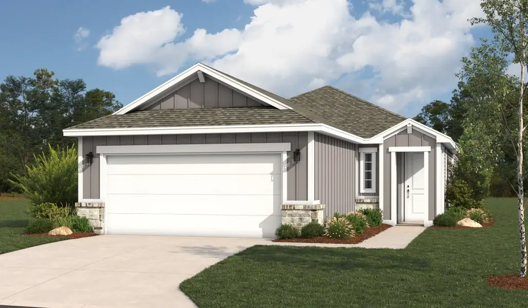 Meet the Pecos - the 1 story, 3-4 bedroom, 2.5-3 bathroom floor plan thoughtfully designed for everyday living. As you walk into the home, you'll find 2 secondary bedrooms and their accompanying full bathroom located near the entrance offering privacy for family or guests. Make your way through the home into the open-space main living area. Here you'll find the chef-inspired kitchen complete with an abundance of cabinet space, an island with bar top seating, and a corner pantry to maximize storage. The dining room is the focal point of the space providing a cozy space to convene over meals. The Great Room's 10' ceilings make the large space feel even bigger when the family gathers for movie nights. The adjacent Flex Room makes a perfect gaming area, study, or can even be turned into a fourth bedroom. Secluded in the rear of the home is the master suite, offering a private retreat at the end of the night. A spa-inspired ensuite with double vanities and a large walk in closet provide a seamless morning while getting ready for the day. Additional highlights of the Pecos include a two-car garage with extra storage space and a covered backyard patio fit for outdoor living.