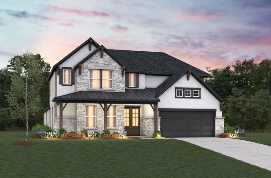 The Westbury is an elegant two-story home showcasing a double front door, dramatic two-story foyer, and sweeping curved staircase. The first-floor primary suite offers a private retreat with a soaring cathedral ceiling, luxury bath, and walk-in closet with laundry access. A front study and private secondary bedroom add flexibility, while the spacious kitchen flows into the dining area and two-story great room. Upstairs, a secluded game room overlooks the main living spaces below.