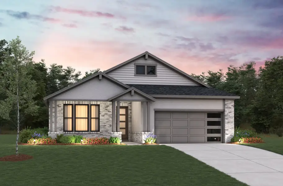 The Crockett is a single-story home with 12’ ceilings and picture windows that fill the open-concept great room with natural light. The dining area features a window seat, and the spacious kitchen includes a walk-in pantry for functional storage. A private primary suite offers a cathedral ceiling, luxury bath, and walk-in closet with laundry access. Choose a study or secondary bedroom, plus a 2-car garage with extra storage.