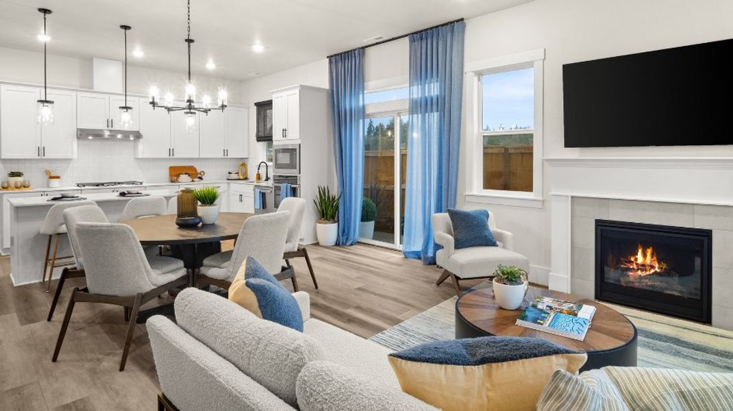 Discover thoughtful design maximizing space for better living in this charming home. Step through the inviting porch into an open-concept layout where the living and dining areas seamlessly connect to the spacious kitchen. Enjoy cooking in the well-appointed kitchen boasting stainless steel appliances and a large island, perfect for meal preparation and entertaining. After dining with loved ones, gather by the cozy fireplace in the living area for relaxation. Upstairs, four bedrooms and a spacious laundry room await, providing ample space for comfort and convenience. The primary bedroom and bath offer luxurious features including dual sinks, a separate shower, soaking tub, and a walk-in closet. Additionally, the two-car garage includes extra space for storage, adding to the home’s functionality and appeal.