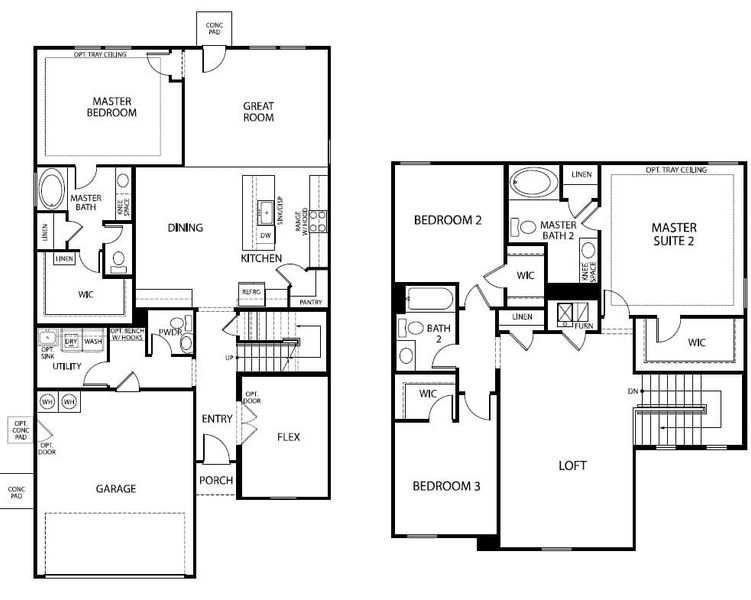 Two-story family room with picture windows overlooking the backyard. This home has it all, 2 master bedrooms one downstairs one upstairs, 4 bedrooms 3.5 baths, game room, flex room. The kitchen features 42″ cabinets, crown molding, including raised cabinet over microwave, soft close cabinets doors, and drawers w/hardware oversized island – per plan.