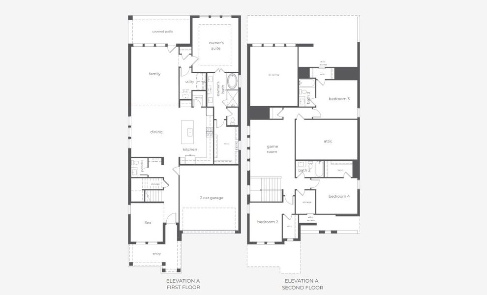 Discover the charming 2,970 SF Chateau home plan, where elegance meets comfort. The flexible space off the entry is perfect for a home office, with a convenient powder bath nearby. The heart of the home features a modern kitchen overlooking the dining room and adjacent to the living room, ensuring you're always part of the action. The private owner’s suite at the back boasts a generous walk-in closet, a luxurious bath, and easy access to the laundry room. Upstairs, three spacious bedrooms, two full baths, including one ensuite, and a bright game room await. The optional media room offers additional family bonding space. Step outside to the expansive covered patio, ideal for creating unforgettable memories. This home is designed for living and cherishing every moment. Experience the lifestyle you’ve always dreamed of!