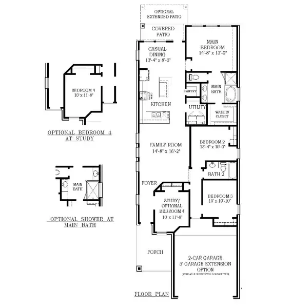 - Extended GarageShower in Primary BathExtra Bedroom